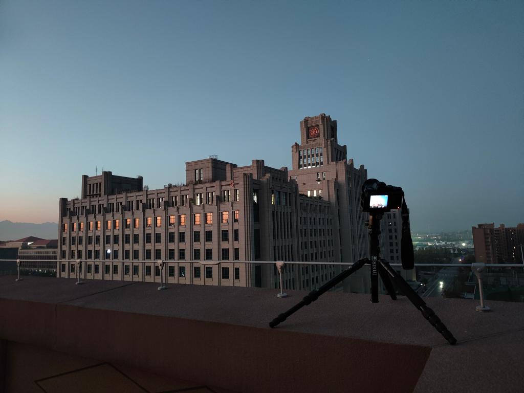 任雨枫还分享了拍摄经验:“空间站每天飞过的路径并不完全一样,11月15日我们还尝试过在涵英楼前拍摄,但是那天很可惜,由于天气不佳没能拍到。拍摄天体飞过地标建筑,首先需要了解所拍摄的人造天体的飞行路径,找好飞行路径与地标建筑的相对位置,还需要一些拍摄星空或夜景的技术。空间站过境轨迹为多张照片堆栈。几十张照片堆栈后,就成了我们所看到的那张照片。”