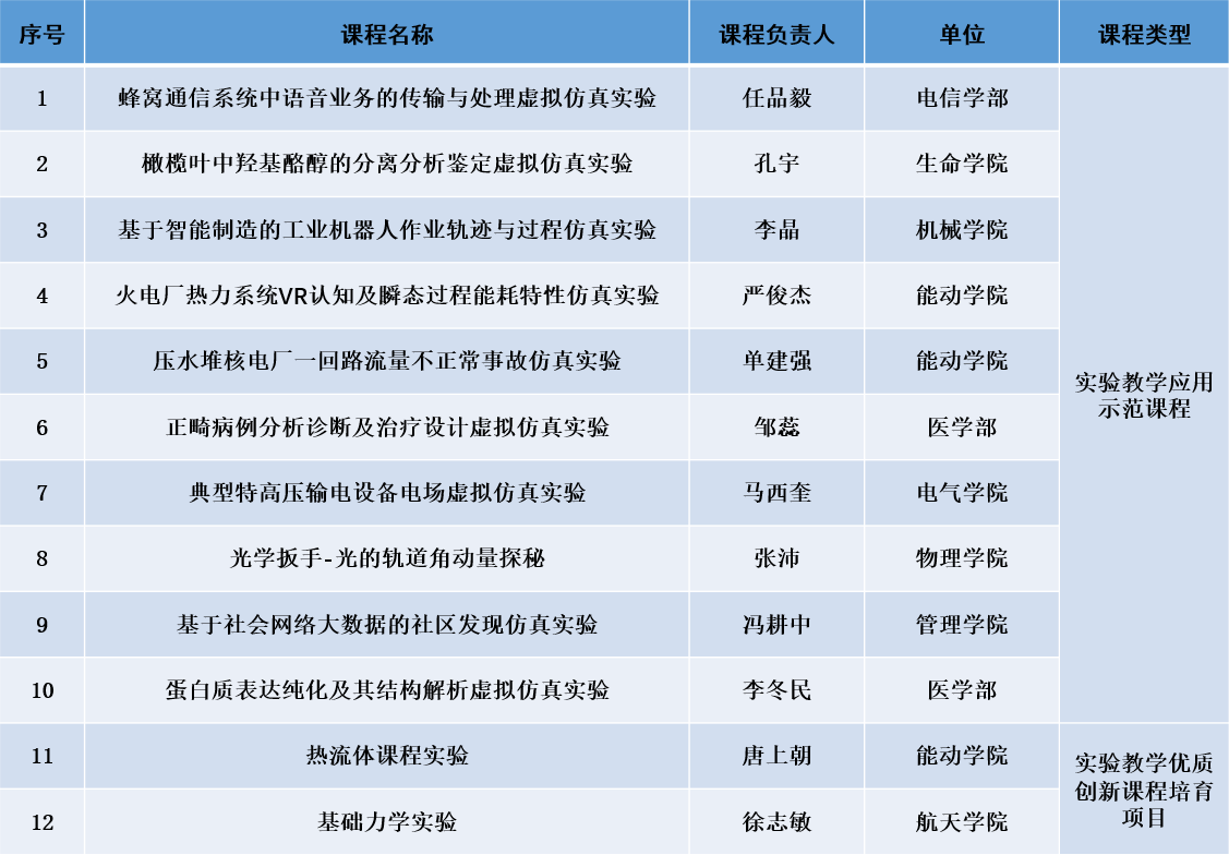 虚拟仿真实验教学创新联盟是在教育部高教司指导下由高等院校、相关企事业单位和专家自愿组成的,开展虚拟仿真实验教学研究、咨询、指导、评估和服务的非盈利社会团体。本次“双百计划”由虚拟仿真实验教学创新联盟发起实施,旨在发挥实验教学课程建设与应用的示范性、引领性作用,落实以学生为中心的教学理念,探索先进技术与课程教学的深度融合。经过课程团队申报、联盟专家评审,共遴选出68门实验教学优质创新课程培育项目和96门实验教学应用示范课程。