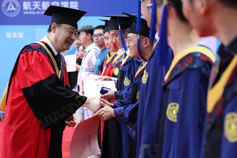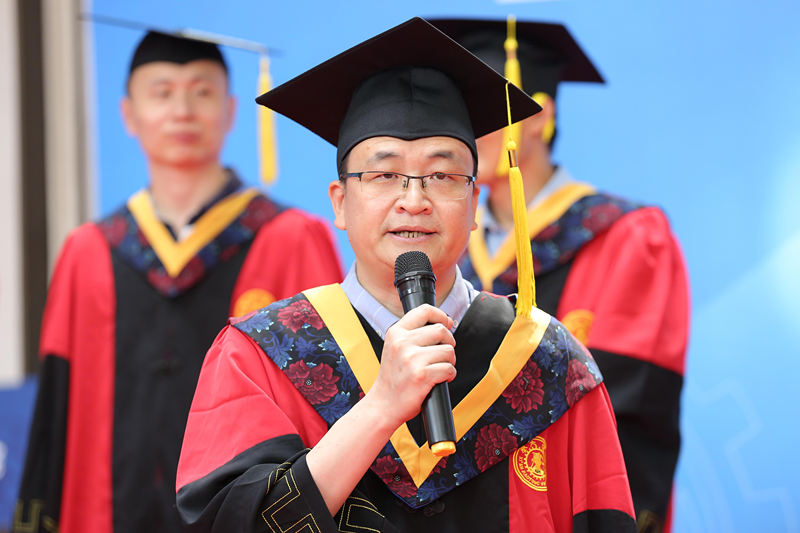 航天学院申胜平院长为毕业生送上寄语。他指出,“100年前平均年龄28岁的共产党创始人勇于创新、善于合作、甘于奉献,为国家民族发展开创出一片新天空。希望同学们赓续共产党人精神血脉,一要勇于创新,‘且将新火试新茶,诗酒趁年华’,在自己最好的年华里勇于创新,善于探索,敢为人先;二要善于合作,只有团结合作才能形成合力,才能在事业上不断走上新的高峰;三要甘于奉献,胸怀“国之大者”,心中有大局,在人生路上‘一点浩然气,千里快哉风’。”申胜平院长鼓励毕业学子,“征途漫漫,唯有奋斗!只有天空才是你们的极限,祝福你们越飞越高!”