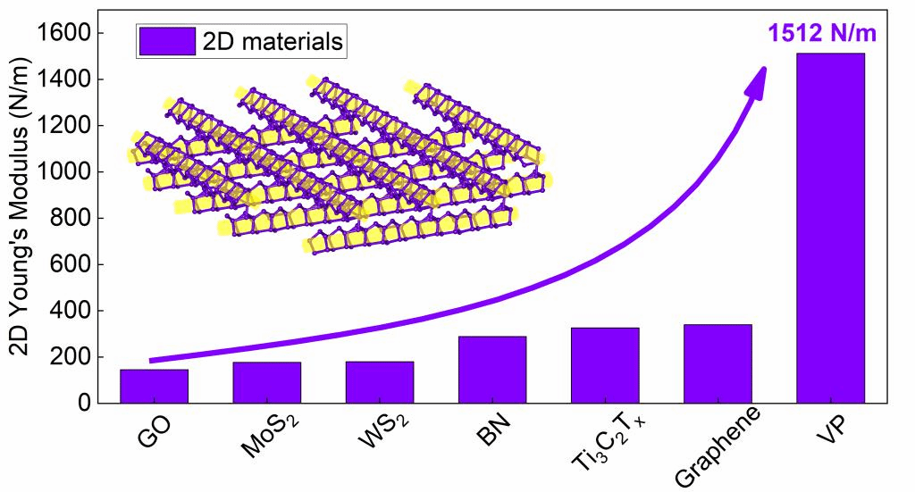 机械结构强度与振动国家重点实验室马利锋教授课题组合作,发现具有交叉结构的紫磷烯二维材料是至今报道的所有二维结构中抗变形能力最强的,具有最高的二维弹性模量,少层紫磷烯具有极高的二维杨氏模量,单层紫磷烯的二维杨氏模量为1512 N/m,其结果是石墨烯二维杨氏模量的4.4倍,远高于其他已经报道过的二维结构,这主要是因为紫磷烯二维交叉结构可以很好地分散施加载荷。相关成果以《交叉结构的二维紫磷烯具有极高的抗变形能力》(Cross Structured Two-dimensional Violet Phosphorene with Extremely High Deformation Resistance)为题发表在材料领域权威期刊《材料化学杂志A》(Journal of Materials Chemistry A)上。新型储能与能量转换纳米材料研究中心博士生张博为第一作者,通讯作者为张锦英教授和马利锋教授。该研究工作得到了国家自然科学基金的资助。材料的表征及测试得到了soul