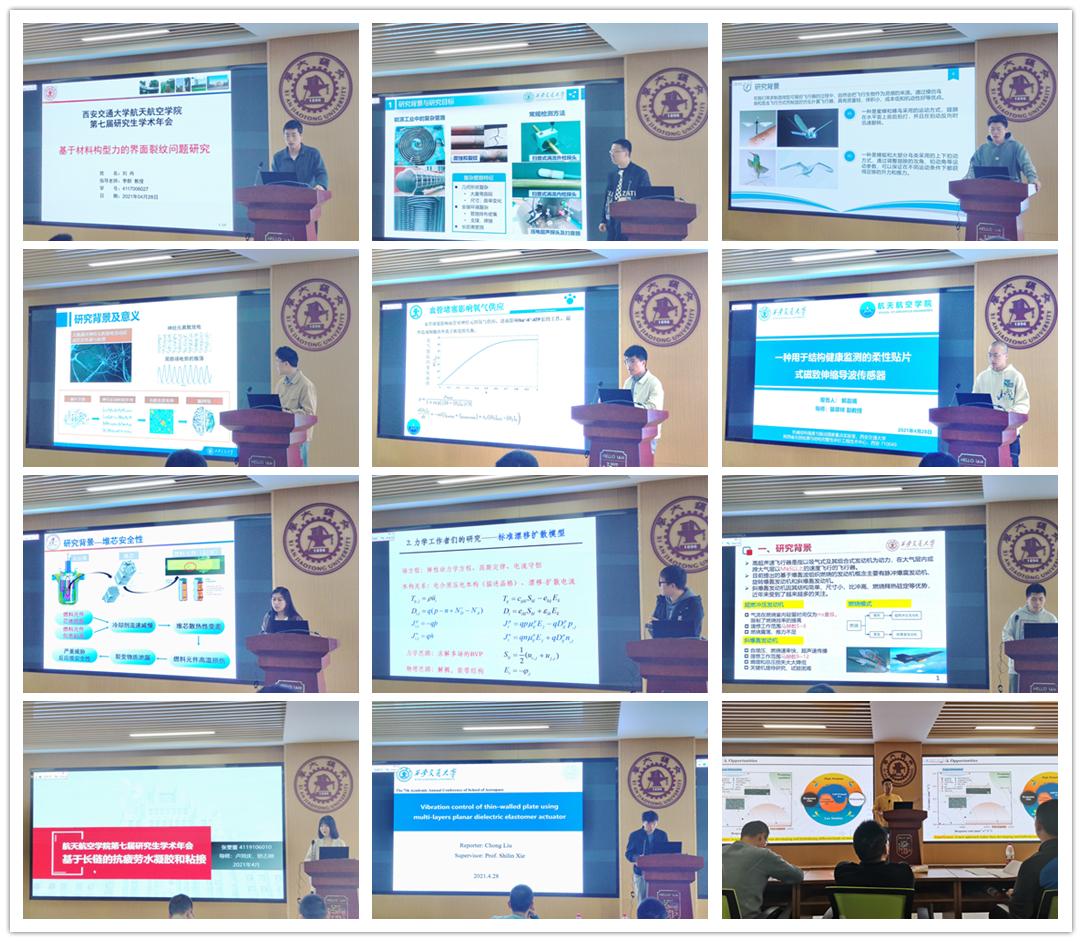 院长申胜平、工程力学系和空天工程系12位评审老师以及近300名研究生参加了此次学术交流。学术年会由航天学院党委副书记陈永华主持。