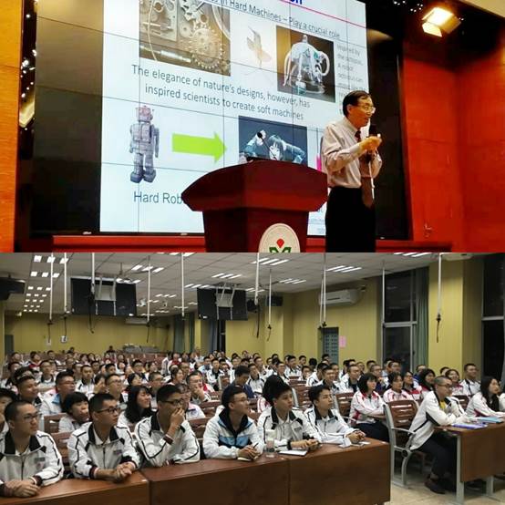 刘子顺教授在养正中学、泉州一中、泉州七中做题为“力学与软机器”的科普讲座,从最常见的交通工具,到讲座现场体现出来的空气流体力学,再到自然界瓜果形状的力学阐释,以及力学在医学中的仿生应用、在软机器方面的运用,通过刘子顺教授的讲解,再次激发了同学们对力学学科的兴趣。
