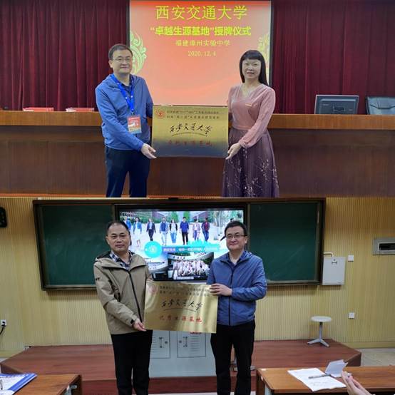 “卓越生源基地”授牌仪式在漳州实验中学报告厅举行。航天学院院长申胜平教授代表学校向漳州实验中学授牌并致辞,航天学院党委副书记、福建招生组组长陈永华副教授代表学校宣读《卓越生源基地授牌决定》。漳州实验中学近年来向soul