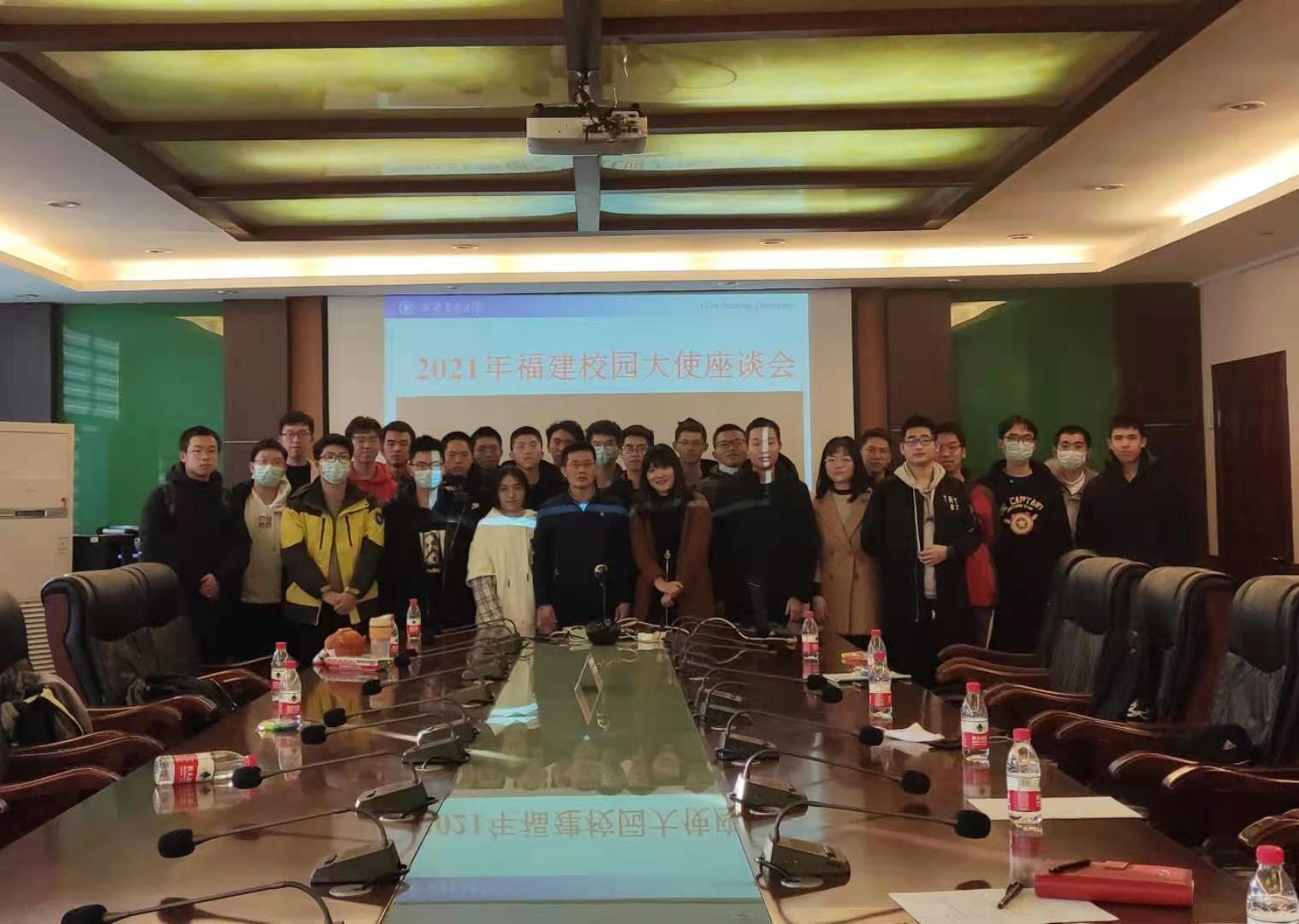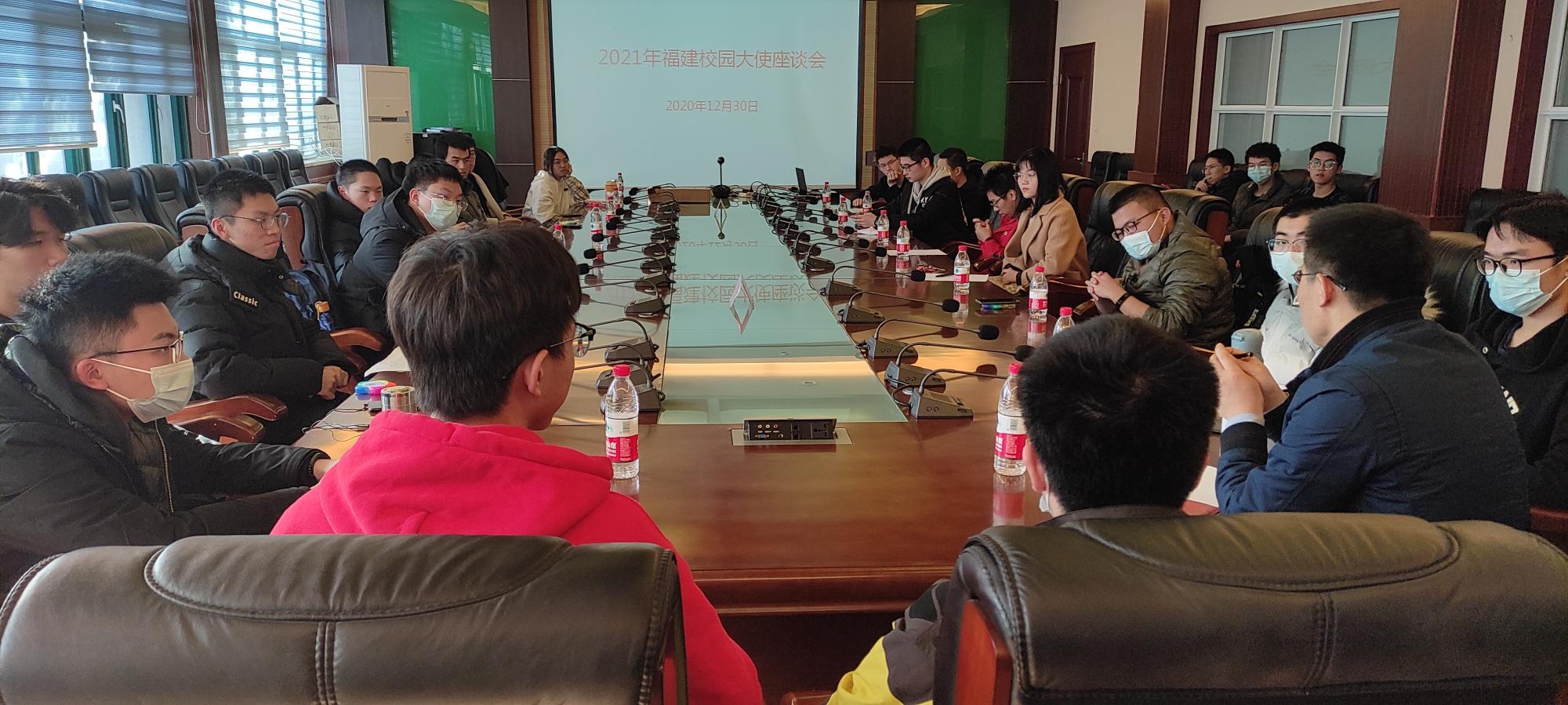 为加强招生组与20级福建新生的联系,并进一步做好校园大使寒假返校宣讲工作,航天学院于2020年12月30日下午在教一楼第三会议室召开2021年福建校园大使座谈会。航天学院党委副书记、福建招生组组长陈永华副教授,福建招生专员来丽君老师,福建校园大使代表30余人参加此次座谈会。