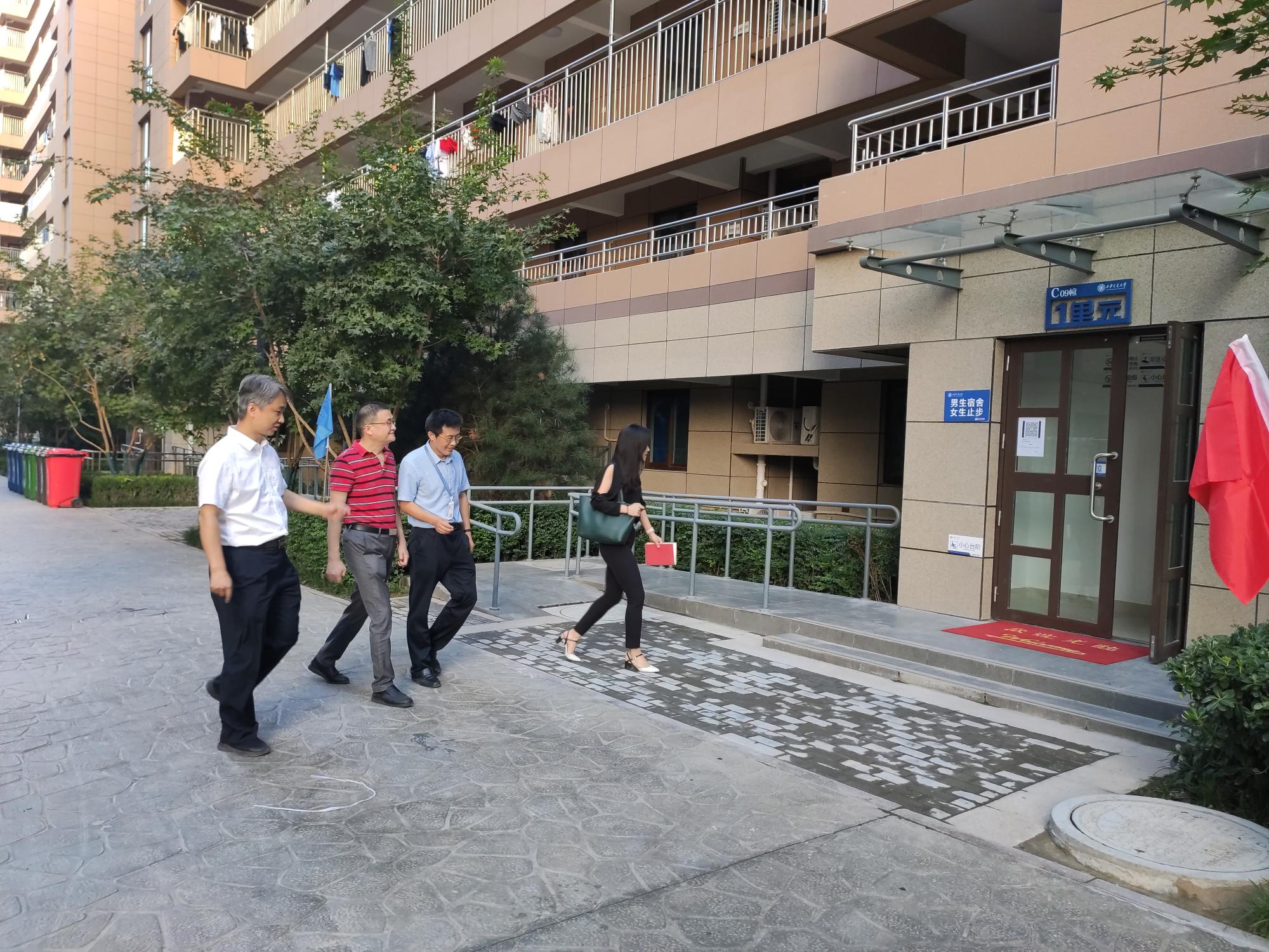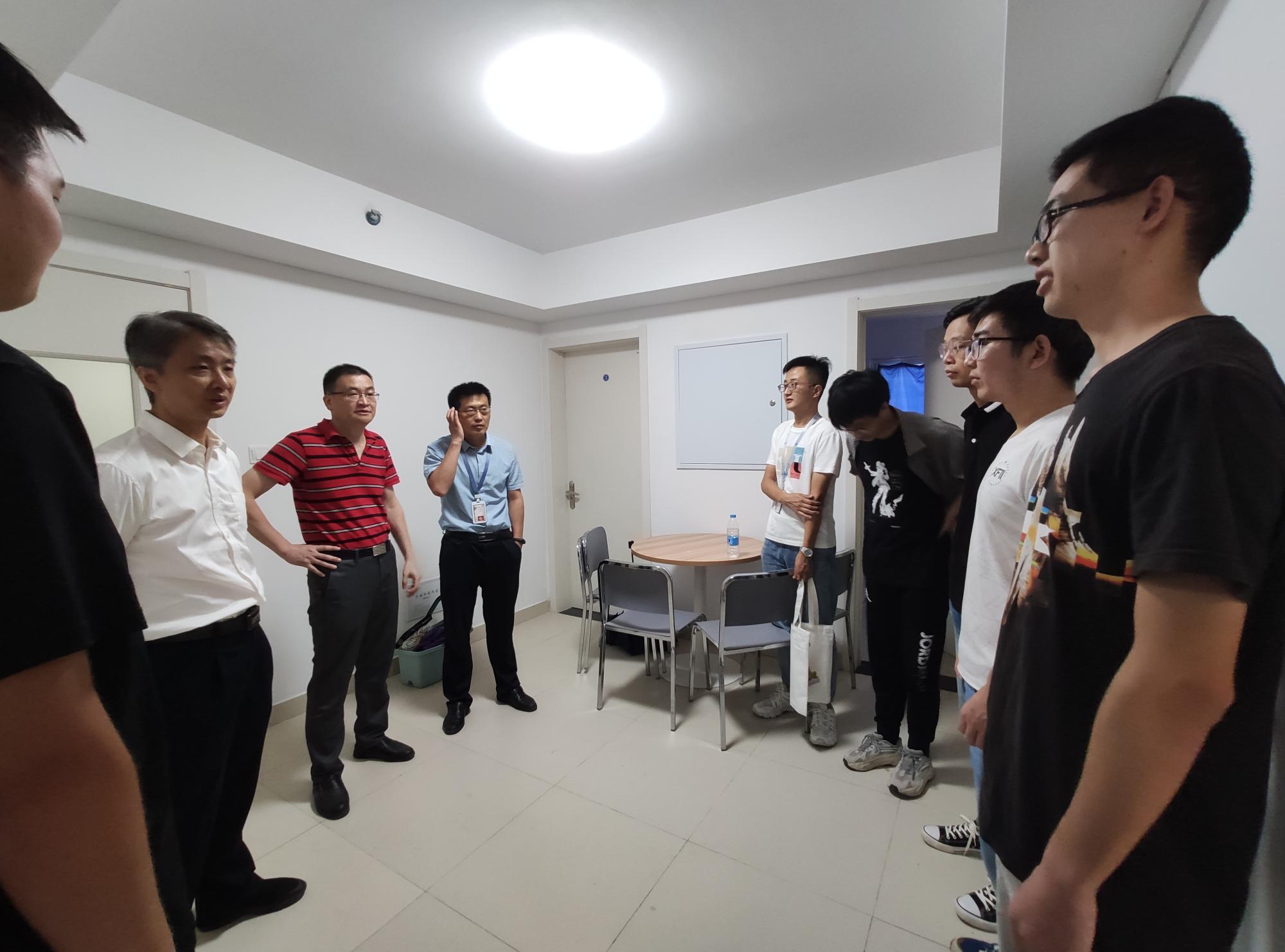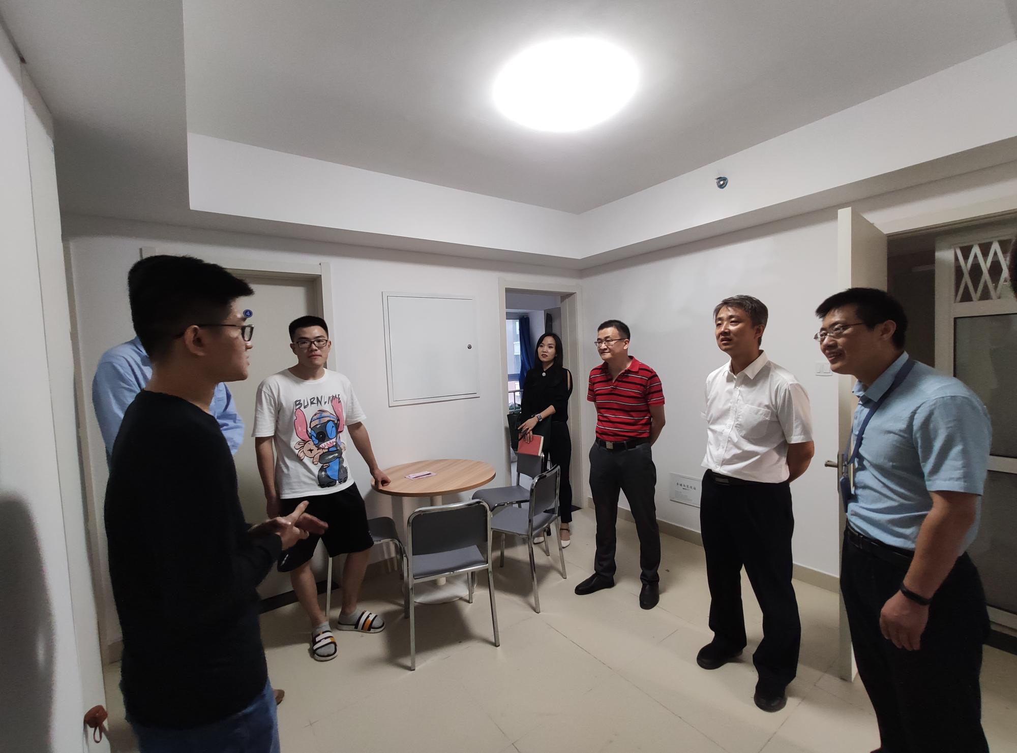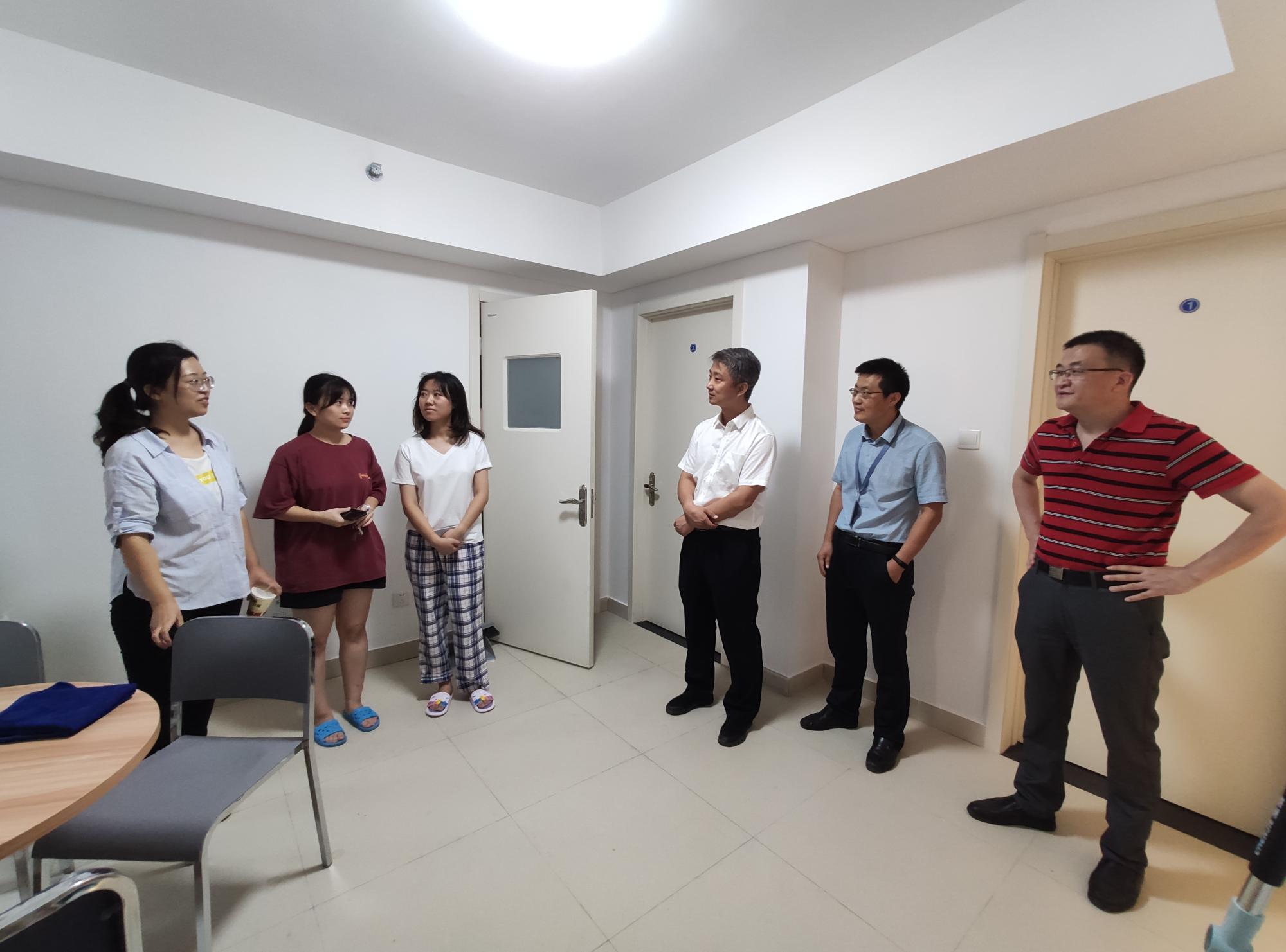 院长申胜平,党委书记李小跃,副书记陈永华,团工委书记、研究生辅导员李昱静在中国西部科技创新港朗园研究生宿舍走访慰问2020级研究生新生。