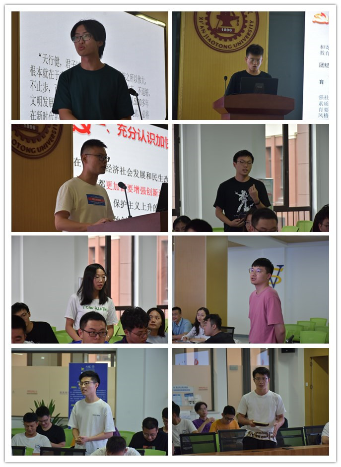 19级硕士第二党支部的刘子扬同学梳理了习近平总书记关于教育科技的重要讲话和指示批示精神,带领大家共同学习了“中国西部科技创新港宣言”。李俊燕同学结合自己在科创月期间参加志愿服务的经历,谈到要珍惜创新港良好的科研环境和“科创月”活动所带来的学习交流机会,了解社会,融入社会,将个人成长与祖国的发展进步结合起来,把科技论文“写”到祖国大地上。