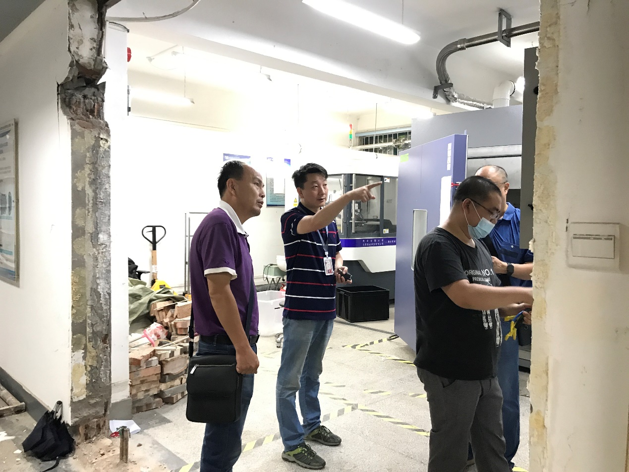 在遵守“最高”原则的前提下,陈洪恩、冯勃他们还要解决“最难”的部分。大型设备的搬迁是实验室搬迁中难度最大的部分。大型贵重精密设备搬迁力求最小程度的拆解,同时满足搬运出入可行性,做到设备搬入尽量不破坏创新港建筑外观,兼顾创新港校区鲁班奖申报需求。怎样以最小的代价顺利完成大型设备搬迁,是一直萦绕在陈老师和冯老师心头的问题。为了实现这两个目标的完美平衡,他俩都从“管理员”变成了“工程师”——要充分考虑大型设备的数量,尺寸,重量,两边搬迁的方式、用具、出入的路线、水电的改造、地基的承重能力等等,在与设备生产厂家、搬家公司、工程施工方等充分沟通和讨论的基础上,确定科学、准确的搬迁方案,这一切意味着,他们不仅仅是懂实验设备的“专家”,还得是懂运输、水电、工程……的“杂家”。