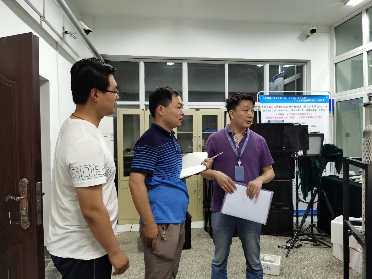 冯勃与搬迁服务人员讨论极端环境试验设备搬迁施工