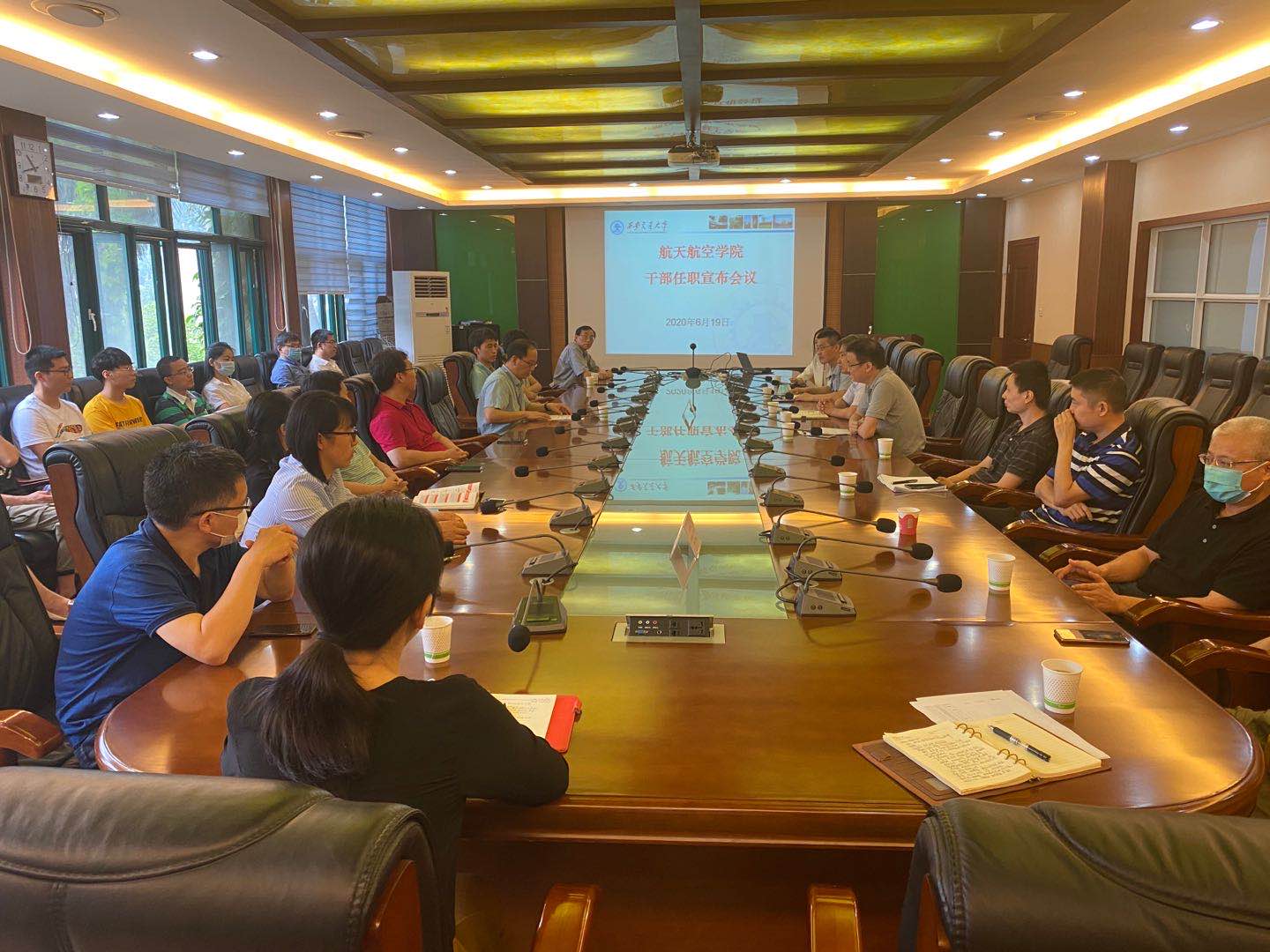 6月19日上午,航天学院举行了新任干部任职宣布会议。学校党委常委、组织部部长柴渭在会上代表校党委宣布任命李小跃为航天学院党委委员、党委书记。航天学院全体党政领导,系(室、中心)主任、副主任,各师生党支部书记,教师代表,院办全体行政人员参加了会议。航天学院申胜平院长主持了会议。