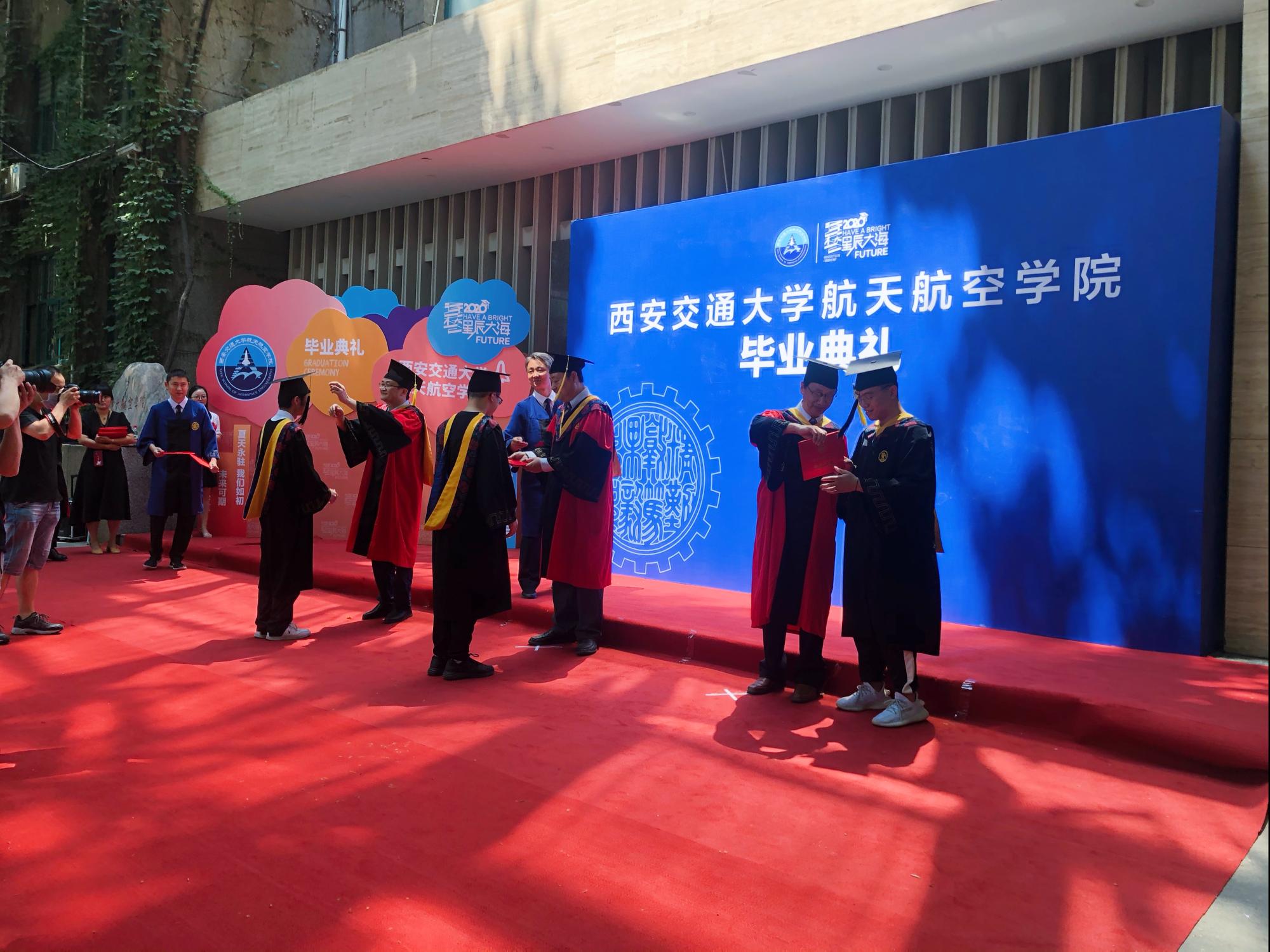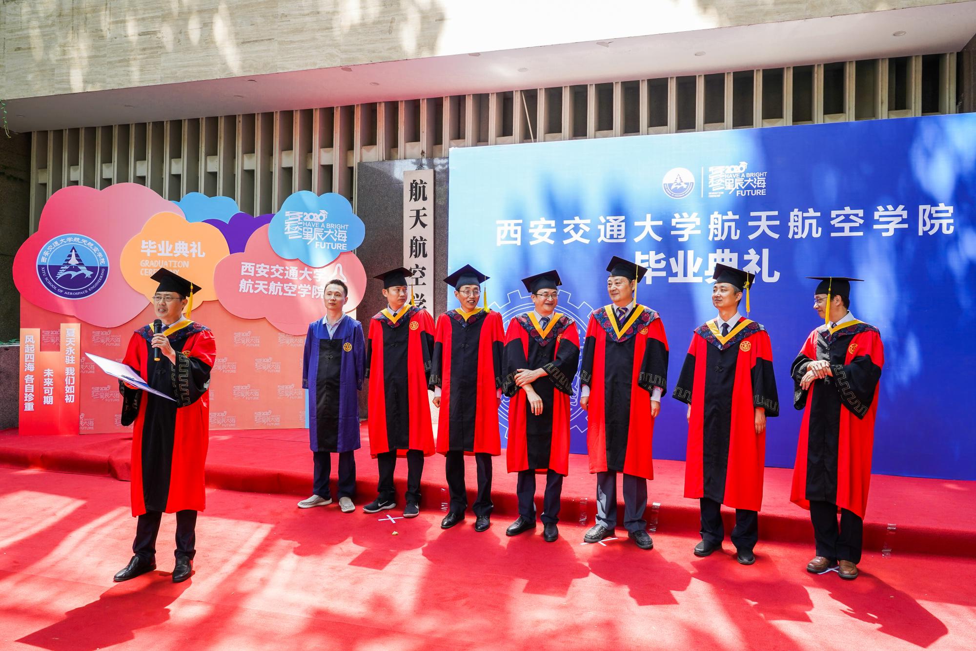 2020届毕业典礼在教一楼前隆重举行。副校长王铁军,院长申胜平,党委书记李小跃,副院长李群、卢同庆,学位分委员会主席李跃明,学术分委员会主席刘子顺,教师代表、本科班主任、辅导员以及2020届本、硕、博毕业生参加本次典礼。毕业典礼由党委副书记陈永华主持。