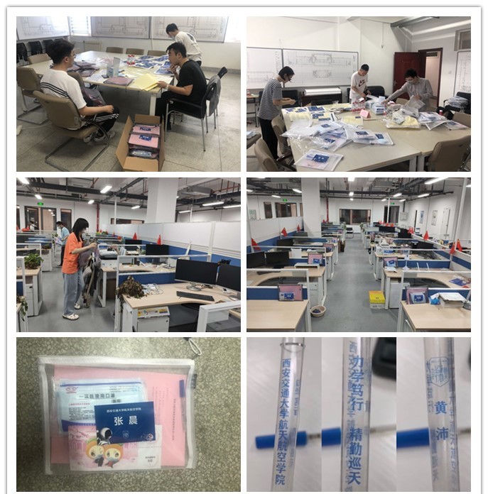 航天学院第一时间组建志愿者团队为第一批268名返校学子以及第二批209名返校学生准备健康“爱心包”。根据学生需求,除学校为返校学子准备了专属姓名的体温计、口罩等防疫物资,学院为“爱心包”增加口罩等必要物资,并在健康包中放入《致返校学生的一封信》,表达学院的欢迎与关心,并对返校后的防控与学习生活进行提示和建议。