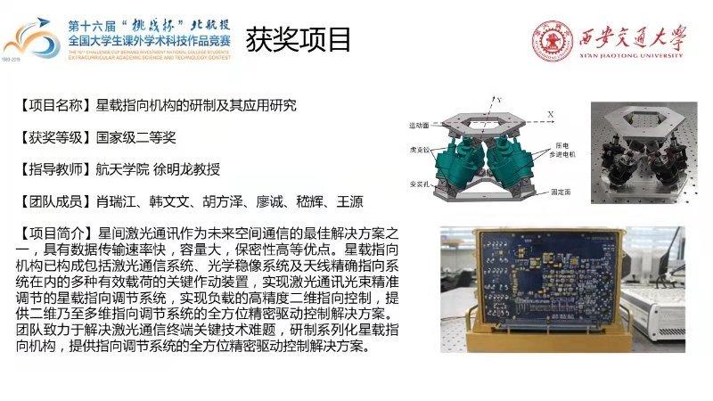 学子肖瑞江等《星载指向机构的研制及其应用研究》(指导教师:徐明龙教授)项目荣获全国二等奖。此次比赛,soul