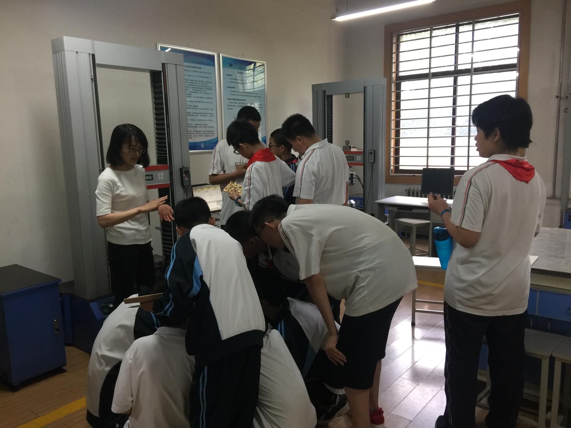 5月24日,力学中心面向社会公众开放,来自交大附中初一的五十名同学们踏着花香来到了交大校园,来到了中一楼里的力学中心进行参观。孩子们活泼开朗,对一切都充满了好奇,每一个实验老师的问题,都有很多小手举起来踊跃回答。