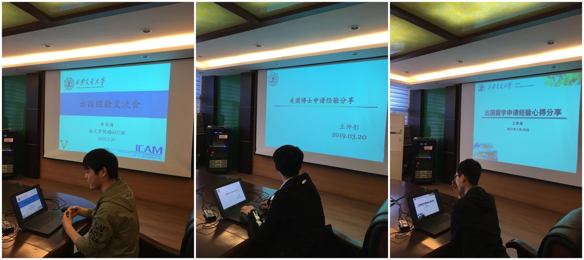 成功举办了出国经验分享交流会。由力学72班班主任唐敬达老师邀请了软机器实验室的即将前往美国康奈尔大学的王继堃、王仲彤和即将前往加州大学圣地亚哥分校的李成海三位研究生同学为航天学院2017级的力学71班、72班的同学分享出国留学的经验。