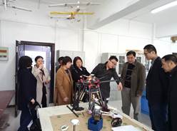 考察团先来到位于中一楼的力学示范中心实验室,先后参观了基础力学实验室、空气动力学实验室、管道振动实验室、水动力实验室及智能飞行器俱乐部和力学俱乐部等。中心的教师们对各个实验室的设备情况、使用情况及实验课程设置等相关内容进行了介绍。