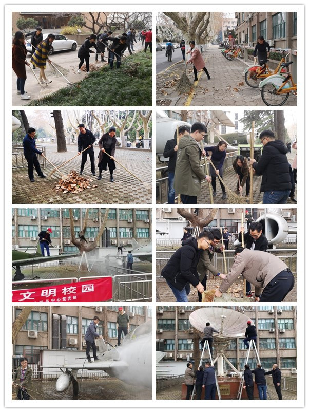 在两会召开和学雷锋日来临之际,3月5日下午,航天学院机关党支部、物业服务中心党支部、航天学院17级硕士生第一党支部联合开展了“雷锋日喜迎两会,停机坪再换新颜”支部联谊共建清扫活动。