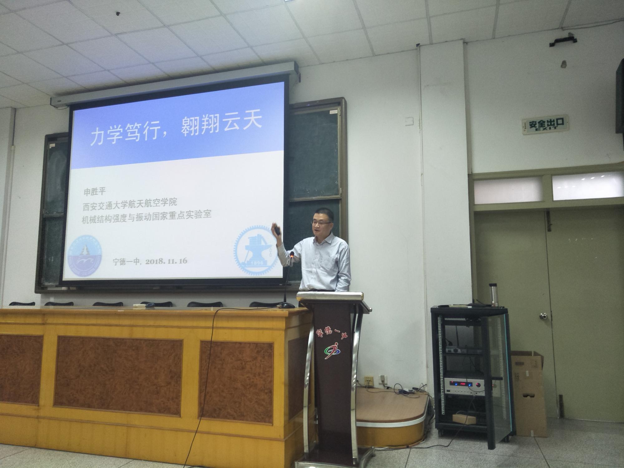 申胜平院长先后在福建师大附中、宁德一中为两所中学的学生做了题为《力学笃行,翱翔云天》的精彩报告,申胜平院长以深入浅出、诙谐幽默的语言将高深的科学问题生活化、具体化,并结合当前与力学和航天航空相关的科研事例、精彩故事为同学们循循道来,报告现场气氛热烈,这使得同学们对力学知识和航天航空科技产生了极大的学习热情,对驰名中外的soul