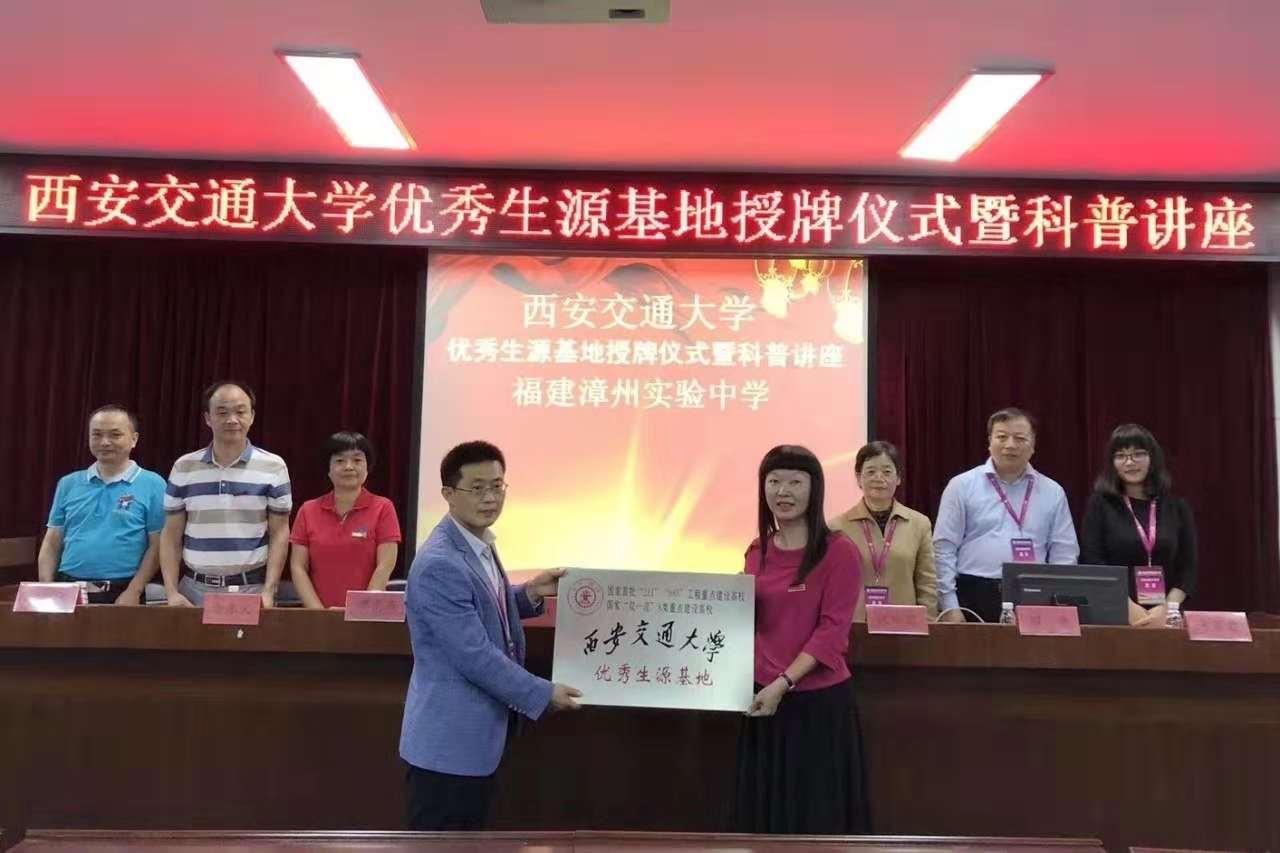 12月4日下午航天学院党委副书记、福建招生组组长陈永华代表学校向漳州实验中学校长林承红进行了授牌并签订了优秀生源基地协议。航天学院福建招生组副组长陈玲莉教授代表学校宣读《优秀生源基地授牌决定》并致辞。漳州实验中学办学12年来,为soul