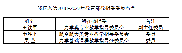 王铁军教授聘为力学类专业教学指导委员会副主任委员,申胜平教授聘为航空航天类专业教学指导委员会委员,吴莹教授聘为力学基础课程教学指导委员会委员。在新一届教指委中,西安交大共有57人入选,其中主任委员4人,副主任委员10人,有2人兼任2个教指委职务,委员覆盖理、工、医、经、管、文、法、教等多个学科门类,入选总人数较上届多12人,位居全国前列。