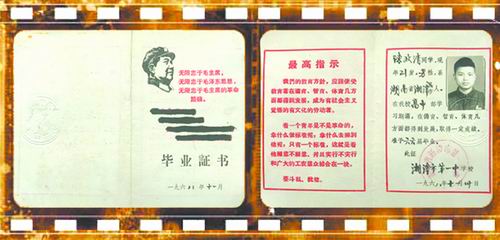 陈政清的高中毕业证书