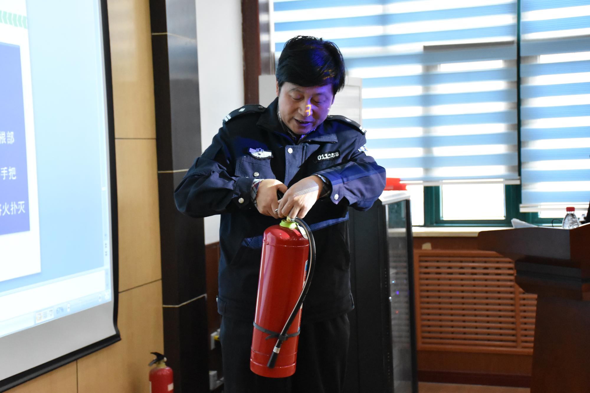 本月同时也是消防安全月,高队长为大家讲解了基本消防安全制度,并简要介绍相关法律法规,强化大家的基本消防观念,并以校园内曾发生的真实案例,并配合一幅幅触目惊心的图片、一段段发人深省的视频,生动的讲解了消防安全知识和注意事项,随后,高大队长介绍了常规消防设施的使用,并在现场演示了灭火器的使用方法,使大家对于消防知识有了更直观的了解。