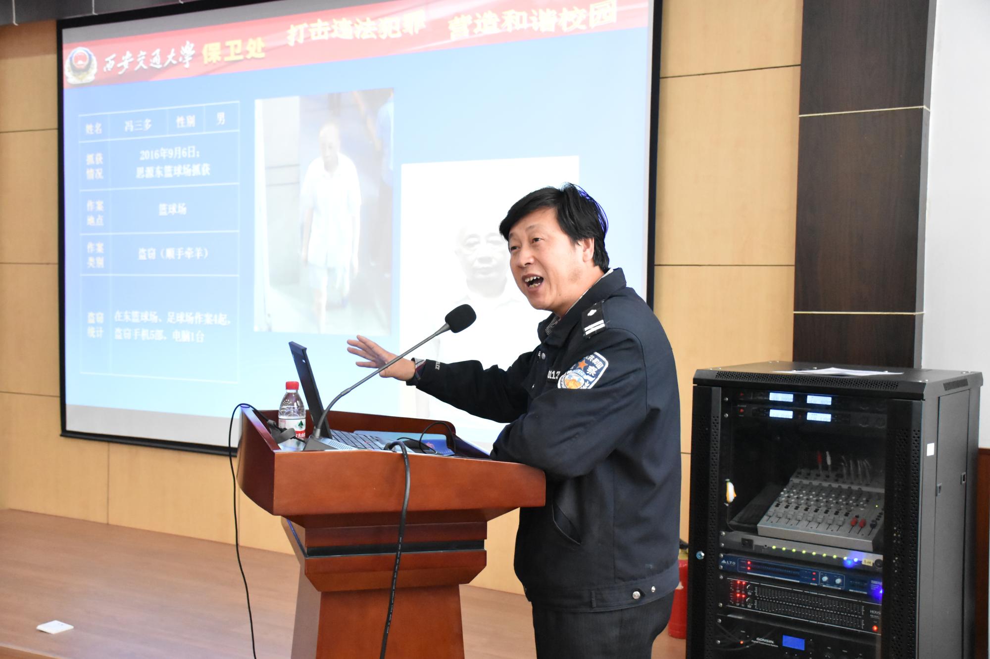 首先,高队长就高校容易发生的各种犯罪情况进行了介绍,以实际的案例结合监控视频直观的将宿舍,教室,教研室等场合发生的违法犯罪行为呈现在同学们面前,旨在提高同学们对于自身财物的保护意识和对于违法犯罪行为的警惕意识。