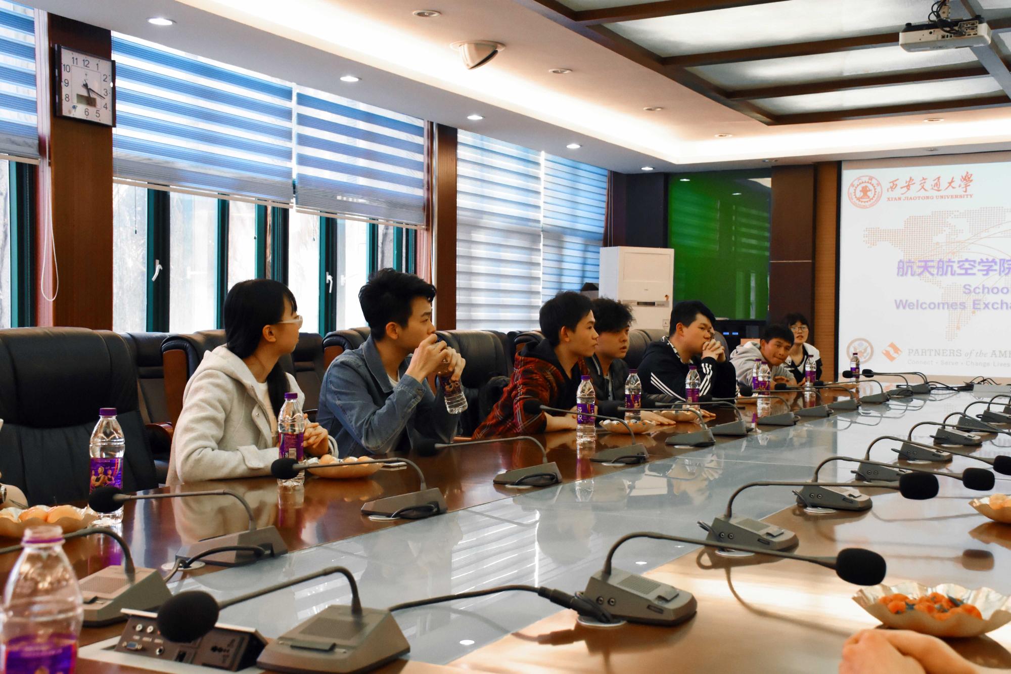 举办了一场轻松友好的国际交换生交流座谈会。出席此次座谈会的有院长申胜平教授,副院长吴莹教授,党委副书记陈永华副教授,国际应用力学中心执行主任刘子顺教授,美国爱荷华州立大学航空航天工程系洪伟副教授,辅导员李昱静老师,美国爱荷华州立大学的三名交流生以及航天学院的10余名本科生。本次座谈会由刘子顺教授主持。