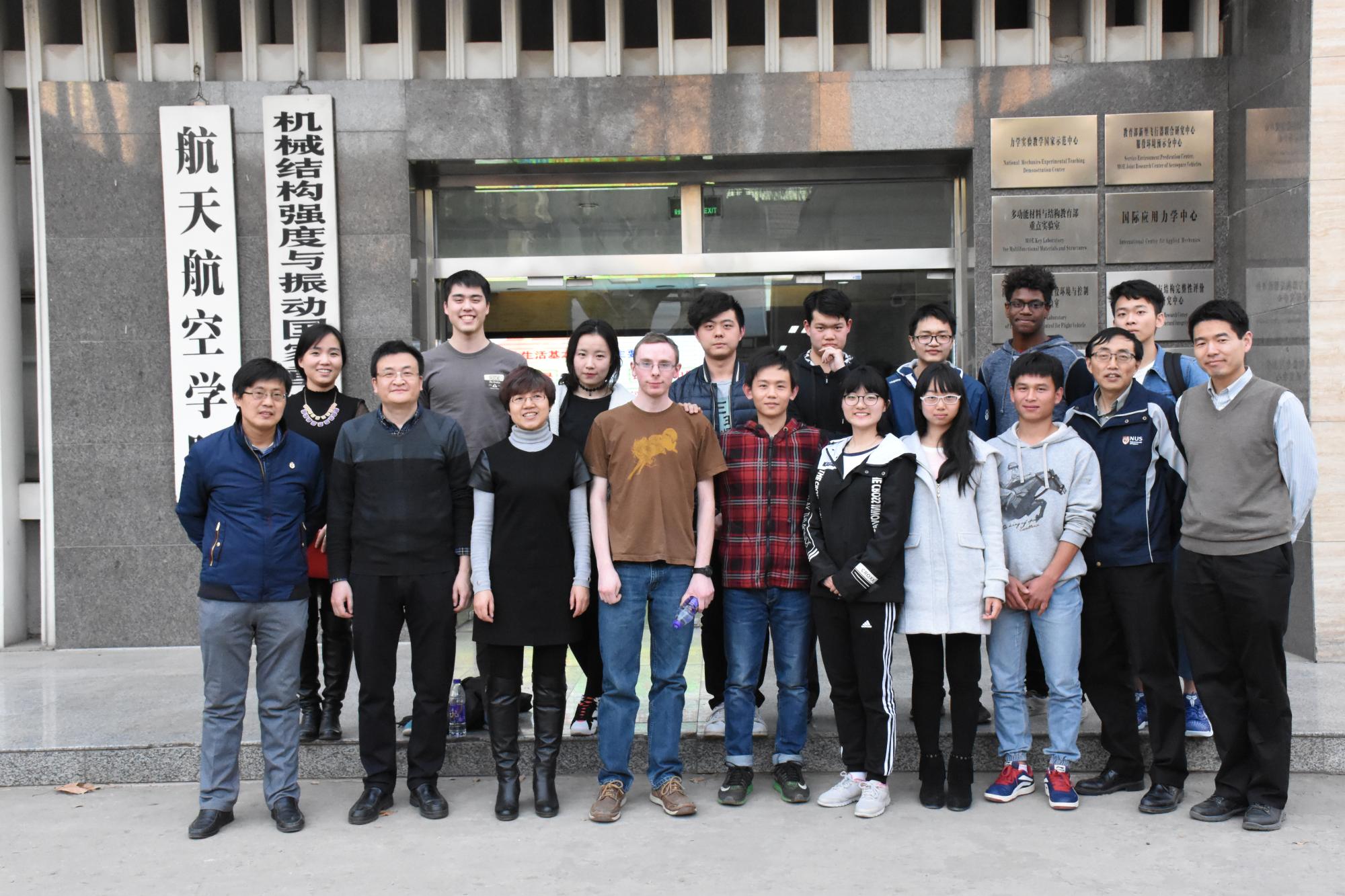 座谈会后,老师和同学们一起参观了机械结构强度与振动国家重点实验室并在学院大厅前拍照留念。