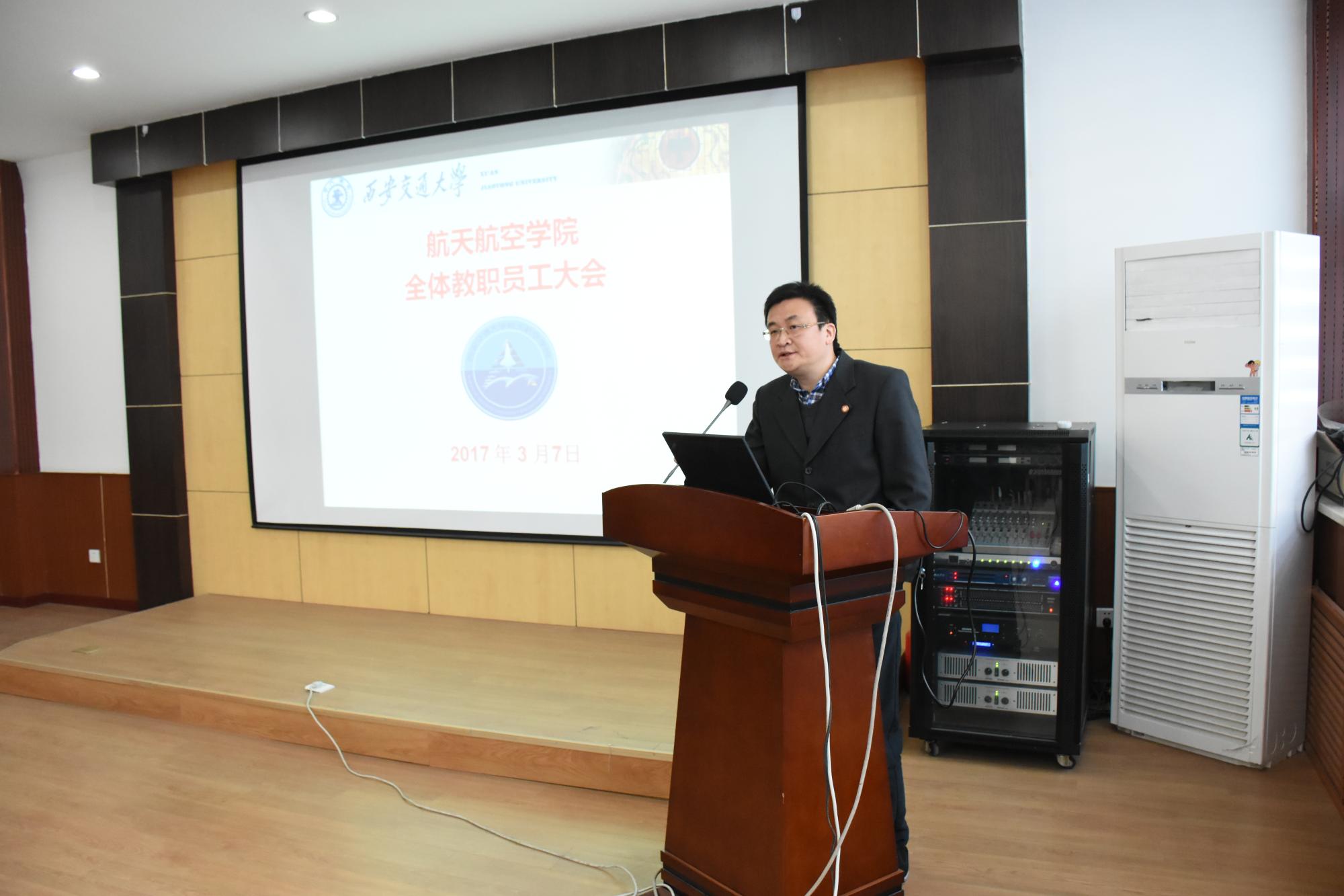 3月7日上午,航天学院召开全院教职工大会。大会通报了学院基层教学组织调整情况,并开展了本科教学评估工作动员。