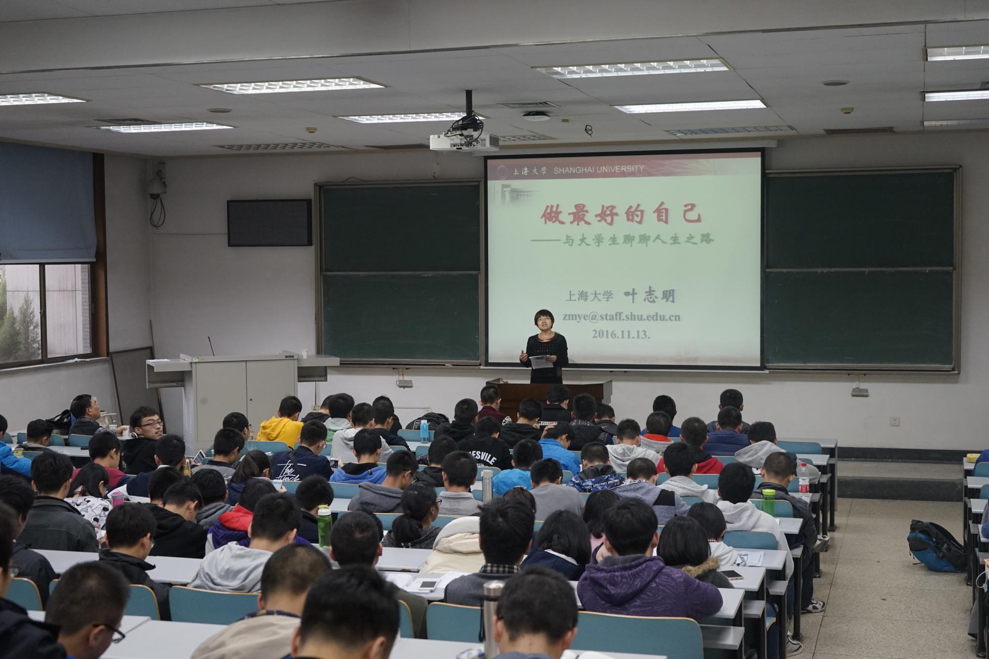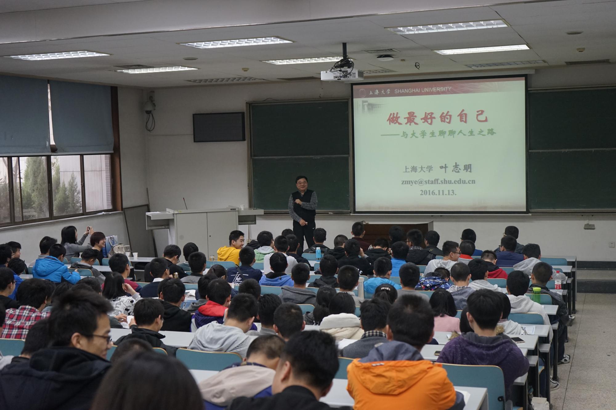 名师系列讲座在主C104举行,本次报告会邀请了上海大学前副校长叶志明教授做了关于“做最好的自己——与大学生们聊聊人生之路”的主题报告, soul