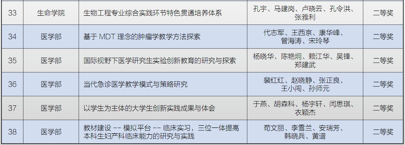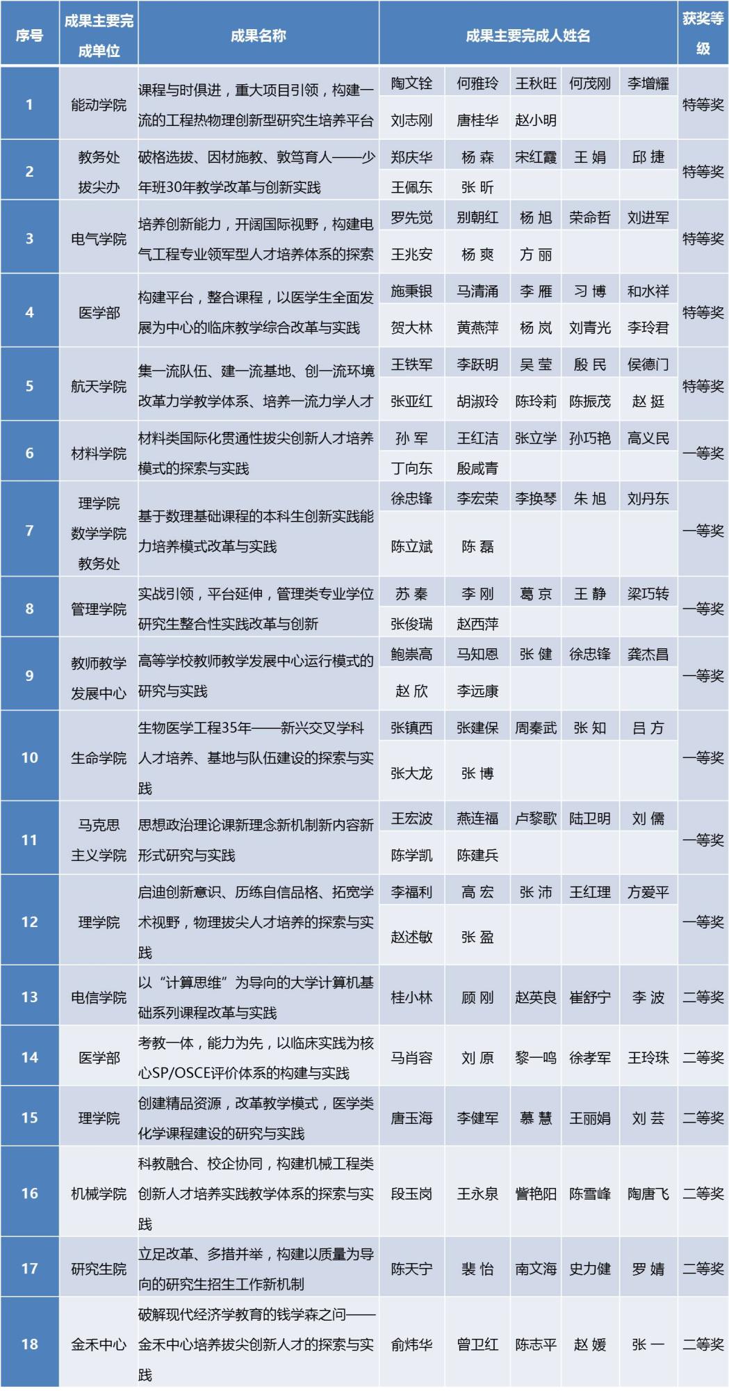 第十四届教学成果奖获奖名单