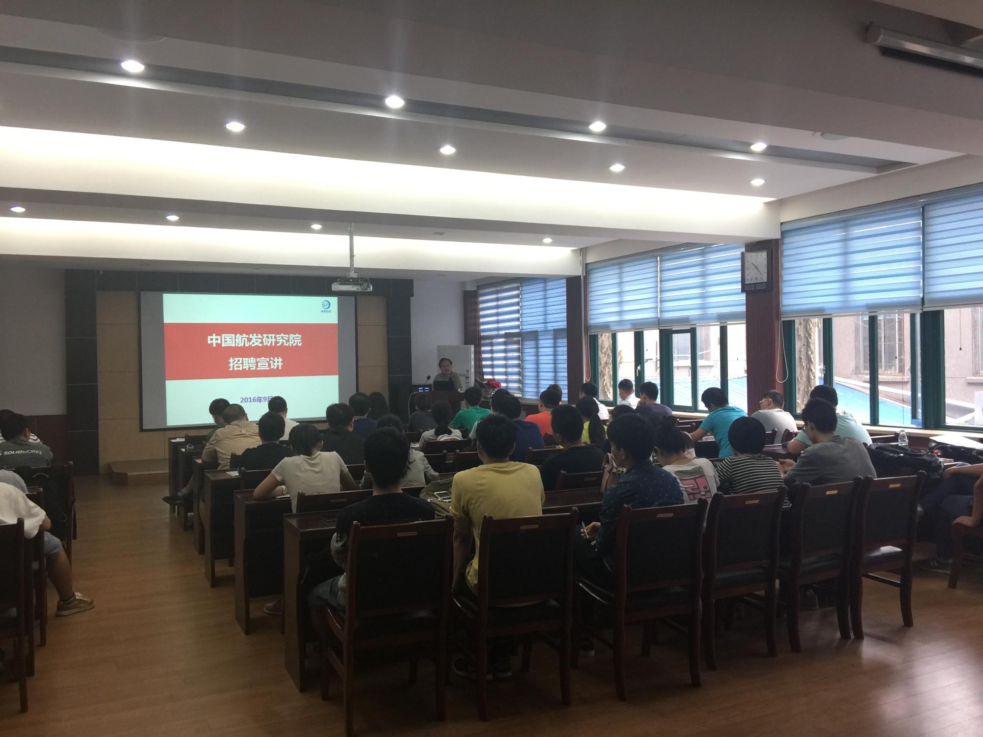 毕业生踊跃到中国航发研究院建功立业;沙部长就招聘岗位、岗位需求以及待遇薪酬进行了系统的介绍,并就学生关心的问题进行了一一作答。