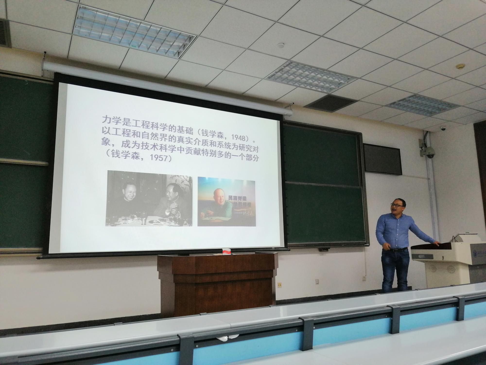 随后,力学系谢勇主任通过诙谐幽默的文字报告以及实验成果演示,就力学学科的重要性及研究内容、工程力学的专业历史、 soul