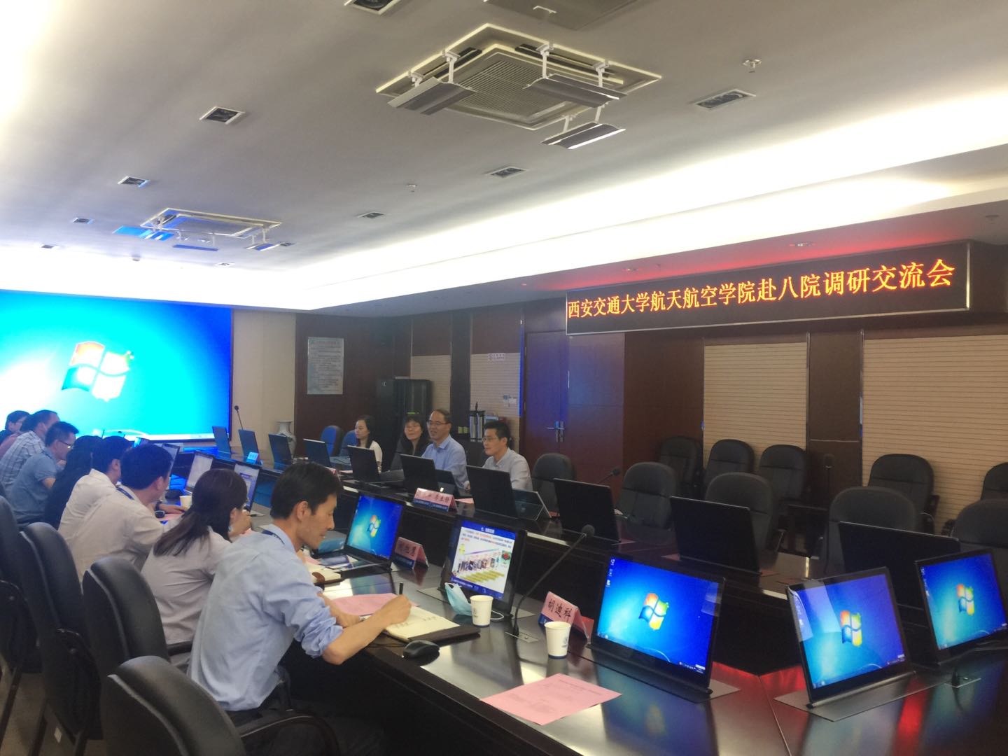 的发展建设情况和此次调研的背景,航天八院下属八部、805所、509所三家基层单位领导分别介绍了单位概况和各自的人才需求,西安交大在八院的优秀校友进行了发言。经过深入的交流研讨,双方一致同意将加强全方位合作关系,特别是在共同开展科学研究、校企联合学生培养、学生就业和双方科研人员的互派交流等方面加强合作。