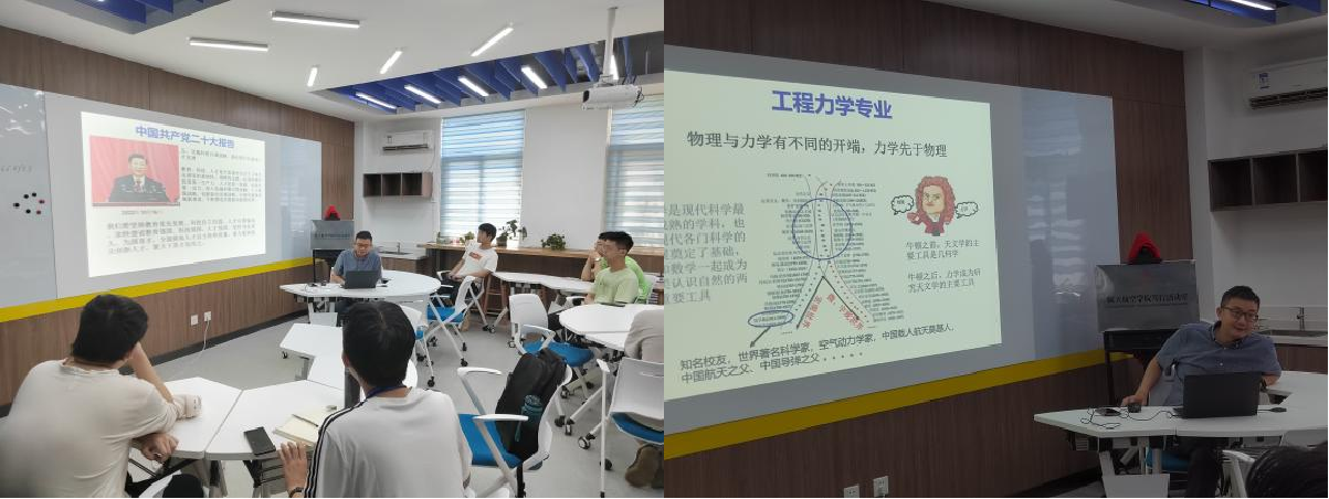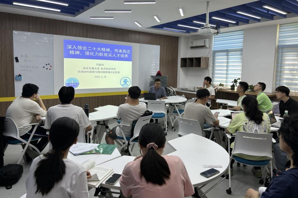 刘益伦教授结合主题教育要求,紧扣学生专业发展需求,以“深入领会二十大精神、传承西迁精神,强化力航拔尖人才培养”为题,为学生讲授了一节鲜活生动的专业党课。