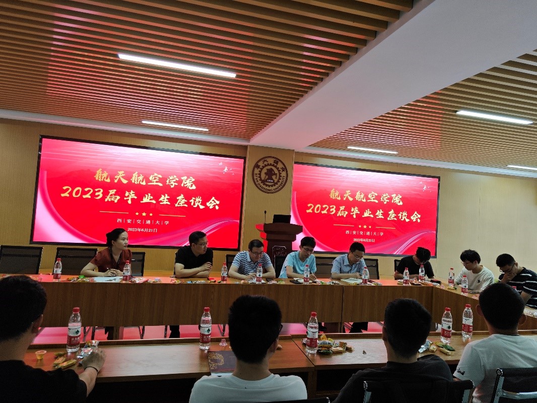 参与座谈会的毕业生代表中,有的将出国读博深造,有的将在航天航空相关科研院所工作,同学们积极发言。王志国首先表达了对于研究生导师的感谢,感谢导师在自己生活、科研等方面的教育之恩,他希望师弟师妹们能谨遵导师的教诲,踏实工作,耐心学习,一定能收获到属于自己的成果。杜振江感谢交大对他这几年的培养,他希望母校能越办越好,为祖国和人民培养出更多优秀的人才。向雨嫣、李洁茹、余波等其他同学也对学校、学院及老师表达了感激之情,并围绕学院课程设置,教学安排,行政建设,基础设施及就业等方面提出了自己的想法和建议。