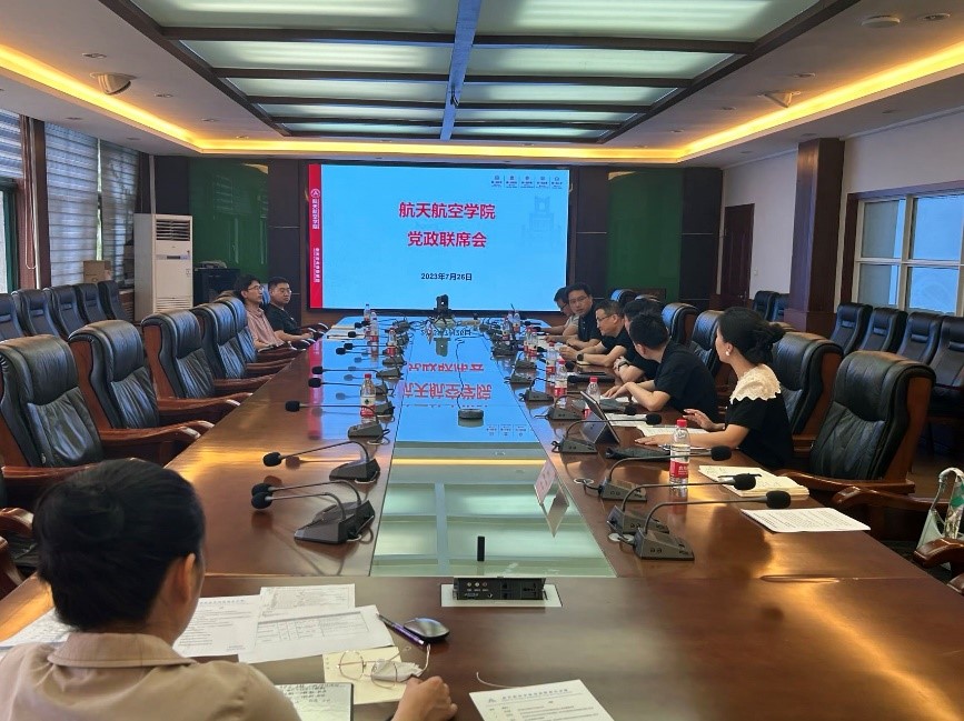 7月26日,航天学院召开党政联席会,与会领导集体学习了习近平总书记在文化传承发展座谈会上发表的重要讲话、习近平总书记在江苏考察时的重要讲话、在中央全面深化改革委员会第二次会议上的重要讲话精神和浙江省“千万工程”经验案例内容,传达学习了学校二级单位党组织书记例会精神。结合理论学习内容,学院领导班子成员紧密围绕中心工作实际,聚焦基础研究、学科交叉融合、加强有组织科研、推进产学研深度融合、夯实全面从严治党工作等议题研讨工作举措,进一步明确了新阶段推动学院高质量发展工作目标与思路。