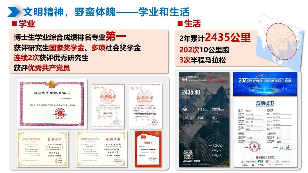 在科研和学习上,刘正帅严格要求自己,在生活中坚持长跑,锤炼身体,磨练意志。