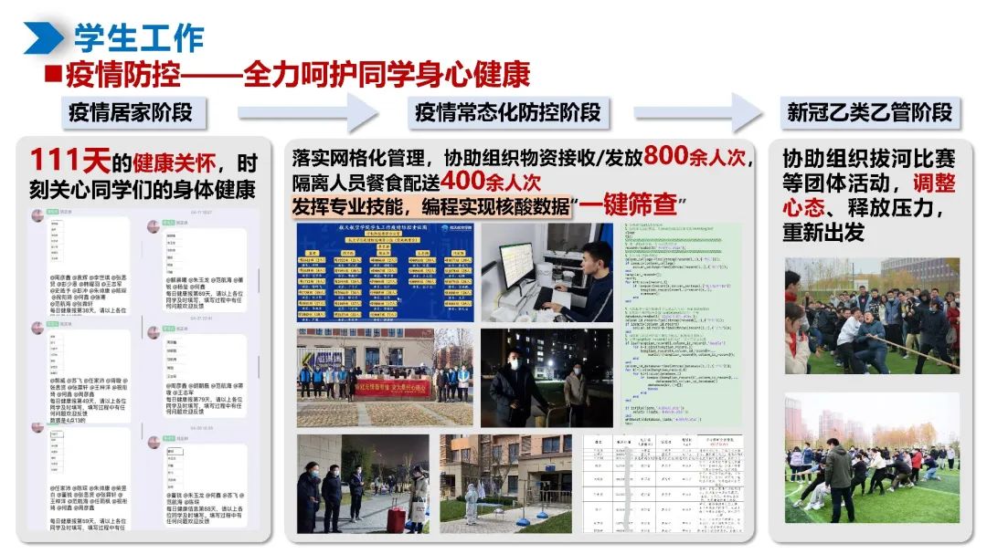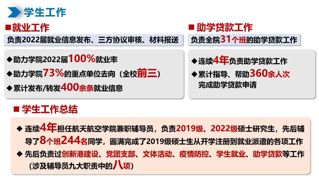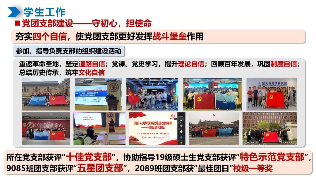在科研学习之外,刘正帅连续4年担任航天学院兼职辅导员,先后负责2019级、2022级硕士研究生。作为学生骨干带领19级研究生共同参与创新港建设,参与组织了对接年级的党团支部建设、校园文体活动、疫情防控、就业指导等工作,负责学院助学贷款专项工作。