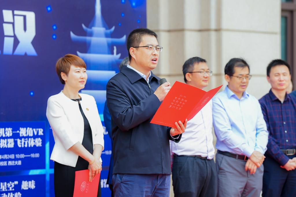 王欢在讲话中表示,68年来,中国航天人秉承自强不息、接续奋斗的精神,在探月、高分、北斗等重大专项取得了圆满成功,2024年中国航天事业迎来了新的里程碑。“中国航天日”是唱响“发展航天事业、建设航天强国”主旋律的重要载体,期待学校、学院牢牢抓住教研一体、学科交叉、产教融合这一战略机遇,在新的平台上继续凝聚力量,团结一致,在服务和融入国家和区域经济社会发展中展现作为,为中国梦、航天梦的实现作出更大的贡献。