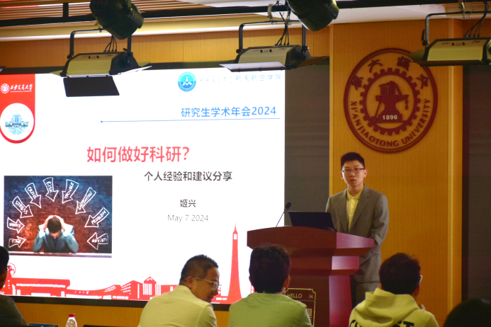 教师代表姬兴教授以“如何做好科研”为题作个人经验和建议分享,他从切身细节建议、培养科研兴趣和个人科研方法与技巧三个方面进行了详细的阐述。他认为,只有对科研工作有浓厚的兴趣,才能够在科研过程中保持持续的热情和动力,并鼓励学生们多尝试不同的研究方向和方法,寻找自己感兴趣的领域,以此为出发点,深入研究,不断探索。