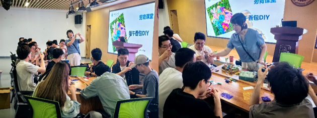 联合校后勤保障部在创新港组织开展“端午安康,香约新港”端午香包手工制作劳育特色实践活动,航天学院黄莺老师授课指导,学院50余名研究生参与。