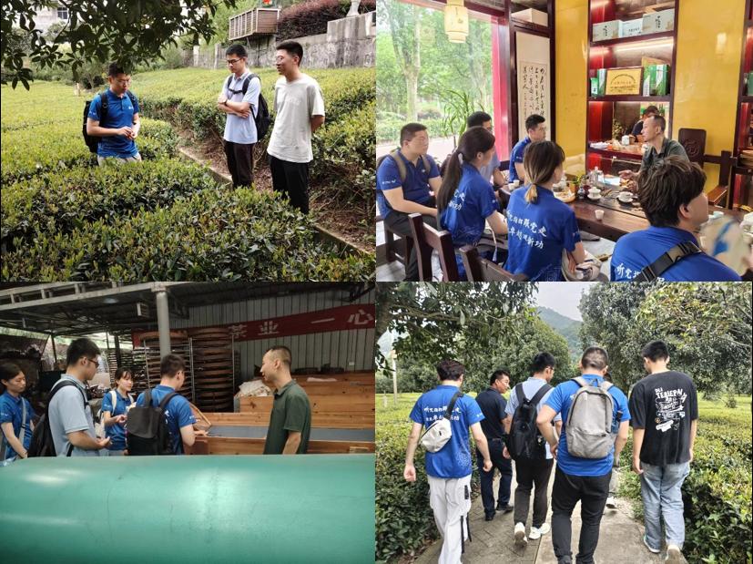 为了解平利县茶旅融合产业,团队成员深入茶园,与当地茶企负责人 进行交流。在茶间田野,实践队员仔细观看茶树结构,学习采茶过程;在茶企加工车间,队员们和龙头茶叶负责人吴美庚热情交谈,了解了当地茶企加工,销售过程;最后,在平利县龙头村党支部副书记萧胜斌的带领下参观茶园规模,重温茶区变景区的致富之路。