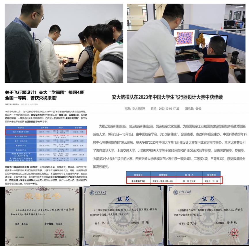 团队坚持“三全育人”理念,落实立德树人根本任务,科研反哺教学,激发学生内驱动力。团队成员负责力学拔尖、强基学生通识、专业课建设,提出了“价值引领、基础强化、创新驱动、个性发展”的力学拔尖创新人才培养模式,获批教育部拔尖2.0教改项目重点课题。最新科研成果固化成课堂教学内容,引导学生参与有组织的科研,提升学生解决国家重大需求的原始创新能力,指导学生获中国国际互联网+双创大赛全国金奖、中国国际飞行器设计挑战赛一等奖等10余项。毕业生获陕西省优秀博士生、西安交大优秀博士生等荣誉,70%留在西部、国家重点行业工作。