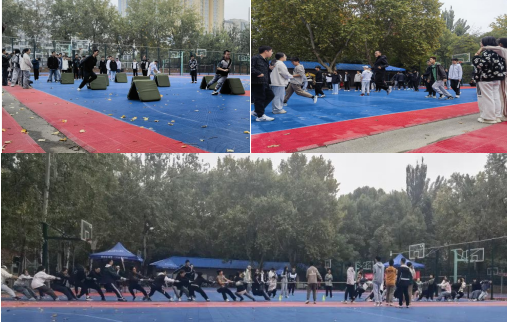 本次趣味运动会以“逐风戏趣 乐动全场”为主题,共设三个项目:12人三分钟跳大绳、6人障碍接力跑和拔河比赛。比赛过程中,各班级口号此起彼伏,响彻田径场,展现了同学们的团结和激情。班级拔河赛中,随着裁判的哨声响起,双方队员紧握绳索,脚跟扎地,身体后倾,全力以赴。观众们的加油声和队员们的呼喊声交织在一起,场面激烈而振奋人心。
