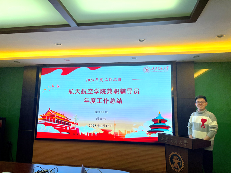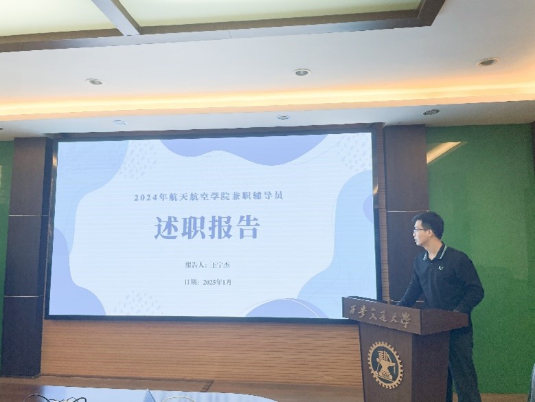 2024年度兼职辅导员述职工作会在兴庆校区教一楼第三会议室举行。本次会议旨在加强学院兼职辅导员队伍建设,集思广益,凝心聚力,明确2025年工作重点与发展目标。航天学院党委副书记李昱静,研究生辅导员李宇辰、王若宜,全体兼职辅导员参加会议。李宇辰主持会议。