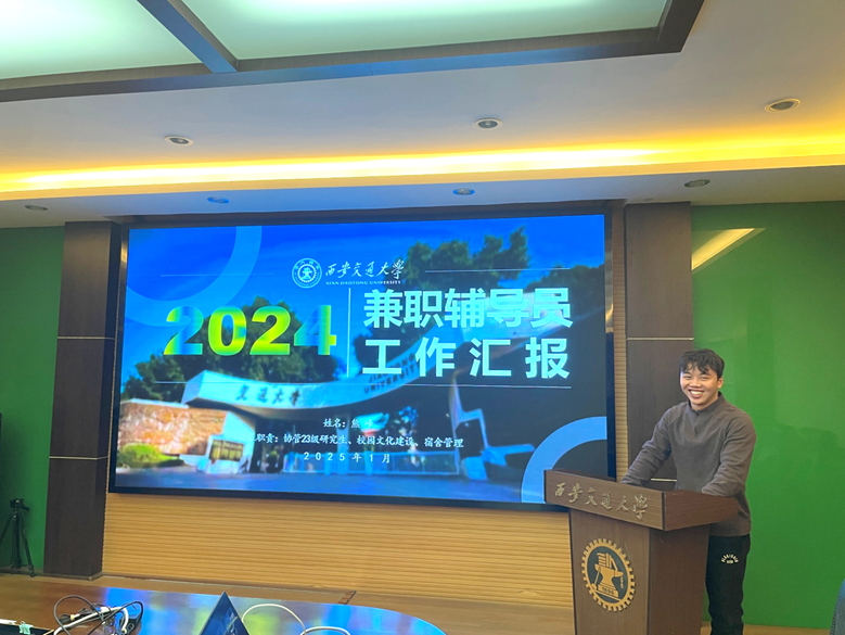 随后,王若宜对本学期2024级新生各项工作进行了总结,总结了经验教训,表达了对各位兼职辅导员的辛勤付出的诚挚感谢。