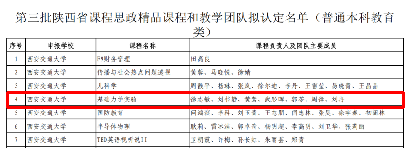 《基础力学实验》课程获批陕西省课程思政精品课程,基础力学实验教学团队获陕西省课程思政教学团队。