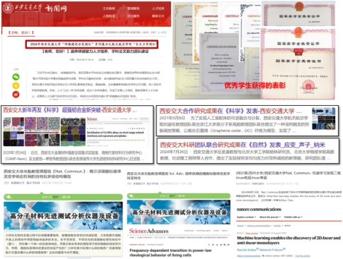 胸怀“国之大者”、锚定解决“卡脖子问题”是交叉力学团队一直以来的目标航向和行为准线。团队聚焦空天高性能复合材料多维度变形和响应、生命体重大疾病时空演化过程中的力学难题,提出了基于多尺度力学分析与人工智能的材料设计和疾病精准评估新范式。发展了微结构敏感强度和挠曲声子热输运理论,实现了2.6 GPa强韧性合金、强韧化及智能化氧化石墨烯纤维。此外,建立了考虑细胞和组织结构的多级结构理论,阐明了细胞幂律粘弹性行为的形成及调节机制,创新性地提出了疾病精准评估的新力学新指标。研究成果发表于Science(2篇)、Nature等一系列国际知名期刊,被基金委基金要闻、科学网、Physics World等广泛报道。近五年承担国家自然科学基金重大项目、国家重点研发计划、国家自然基金杰出青年基金、国家自然科学基金优秀青年基金、陕西省杰出青年科学基金等。积极推进产学研融合,主持建立了“西安交大-成兴国投无序新材料实验室”以及“成兴国投—西安交大医疗器械力学交叉与健康诊断中心”两个千万元级校企研究院,推动科研成果产业化。团队获陕西省三秦创新团队、soul