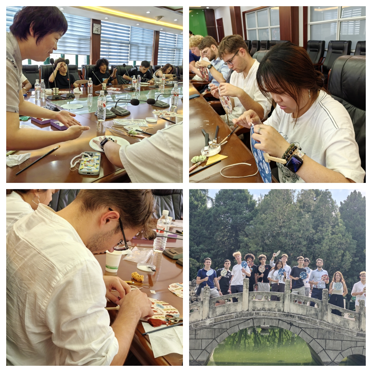 手工团扇制作活动弥漫着浓郁的文化气息。在黄莺老师的指导下,同学们拿起刷子与剪刀,仔细制作属于自己的中国传统团扇。这项活动不仅让同学们体验到手工制作的乐趣,更成为中外文化交流融合的温馨纽带。